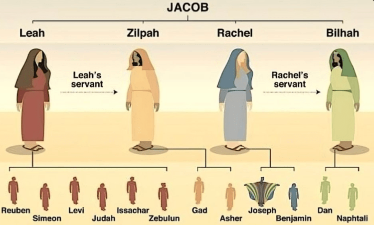 Here are the four mothers of the 12 sons or “tribes” of Israel: