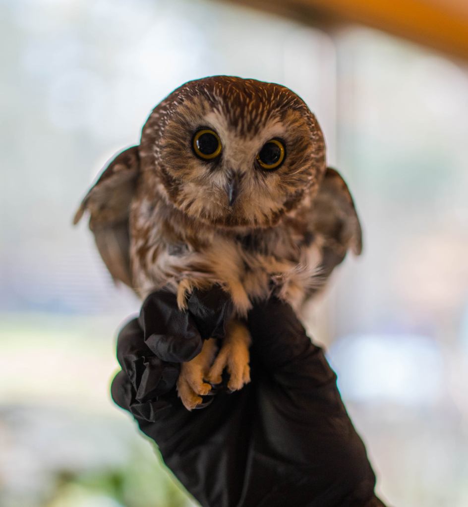 One such inspiring story I’ve heard is about “Rocky the stowaway owl.” Have you heard about Rocky? A worker assembling the large Christmas tree in Manhattan’s Rockefeller Center discovered the little owl inside its branches a couple weeks ago. The tiny Northern saw-whet owl had traveled unnoticed inside the 75-foot Norway spruce 170 miles after the tree was cut down in upstate New York on Nov. 12. The female owl of one of the smallest known species of owls in North America was uninjured, but she hadn’t eaten for at least 3 days. She was sent to Ravensbeard Wildlife Center, where a rehabilitator nursed her back to health. She gave her plenty of fluids and all the mice she could eat. Here are some photos of Rocky, short for Rockefeller.