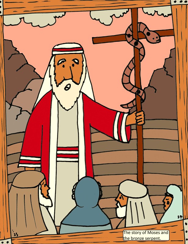 Jesus connects the Old Testament wilderness stories with the promise of the New Covenant, saying,“And just as Moses lifted up the serpent in the wilderness, so must the Son of Man be lifted up, that whosoever believes in him may have eternal life.”