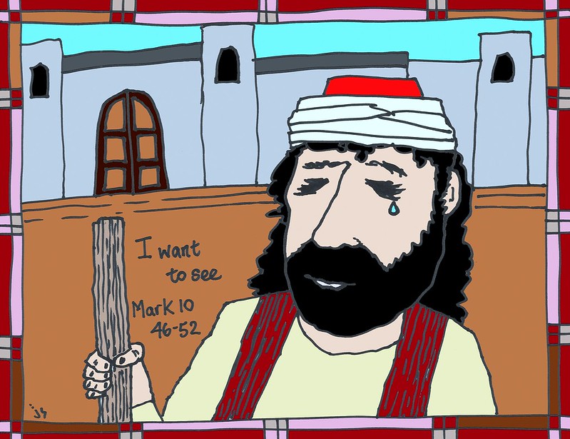 Heavenly Parent, thank you for your love and mercy, hearing us as we cry out to you for healing and salvation. Thank you for the strength and guidance of your Holy Spirit as we seek to follow in your loving ways. Help us when we stumble and fall, when we don’t get it right, like Christ’s earliest disciples. Bless us as we seek to be obedient to your Word. Give us your vision as your church, like you did for Bartimaeus, when your Son was walking the road to Jerusalem, drawing near to the cross where he would give his life as a ransom for many. In the name of our Precious Lord we pray. Amen.