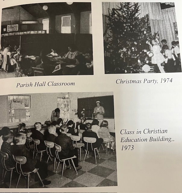 Who was here in the 1960s, when the congregation was overflowing with children and youth? That must have been amazing! By 1972, however, there was a downward trend in enrollment. Listen. “In the age group 2 years through 6th grade, there were 400 registered in 1972. This dropped to 365 in 1973 and at the end of 1974, there were 302 registered. A dedicated teaching and support staff of 80, including 37 teenagers, is required (by 1975) to conduct classes at both 9 and 11 o’clock each Sunday.”