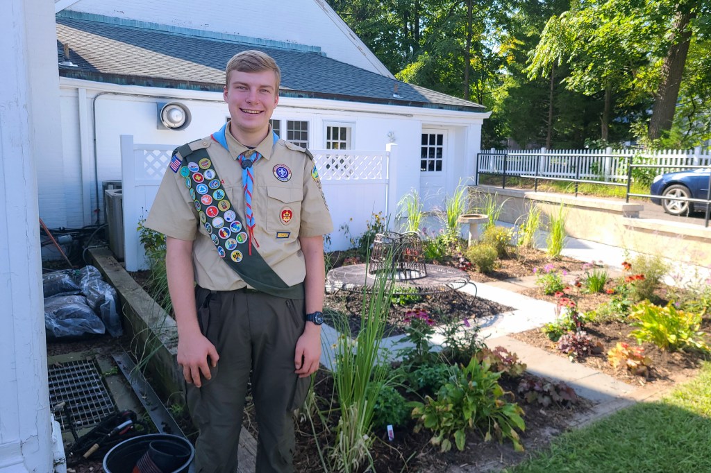 What I noticed right away about Daniel is that he is always willing to help. When asked, he says yes and does his best, never doing anything halfway. He has cheerfully attended many church and manse Saturday workdays, without complaint. His most recent service for the church and his Eagle project is a prayer garden, built and maintained with the help of family, friends, some Scouts, and the church.