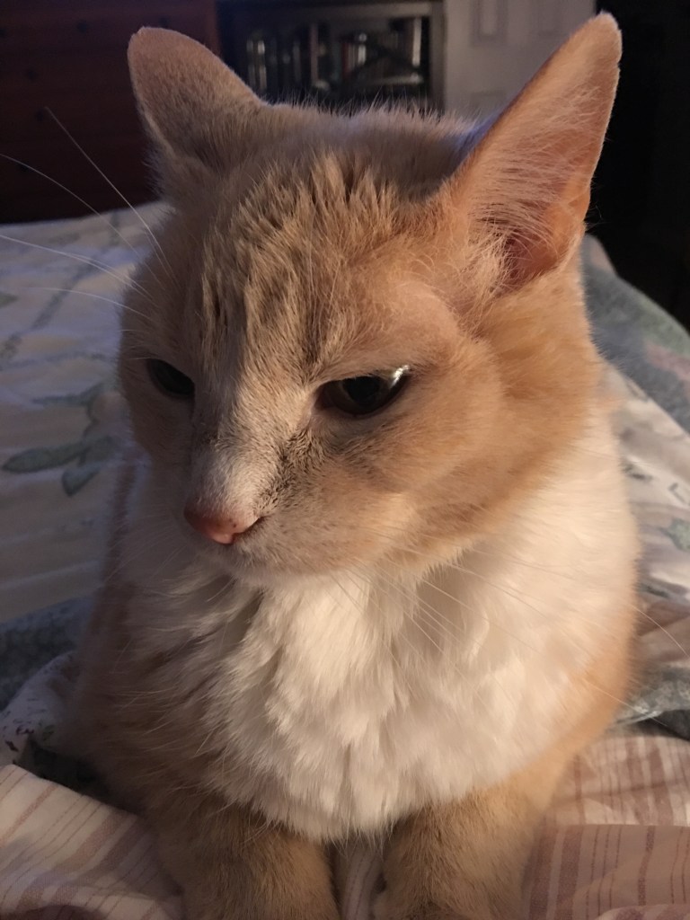 Melvyn lived a long, happy life with us in Minnesota, Florida, and Ohio. He struggled with health problems as he aged. He went blind. He lost his appetite. Then, one day, he couldn’t walk anymore. He had no strength or movement in his hind legs. I didn’t want to let him go. Whenever I held him in my arms, he purred and went to sleep, as if nothing were wrong. He trusted me until the end. Finally, I let him cross the rainbow bridge.