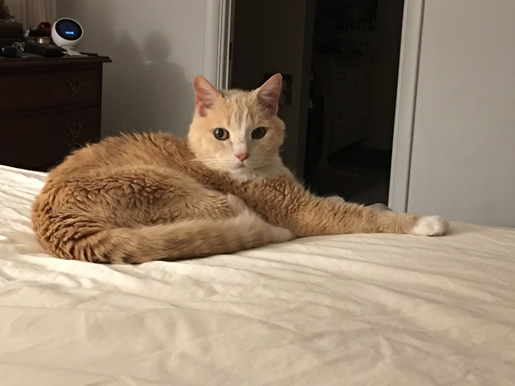 The scruffy looking orange cat with a white belly that swung back and forth when he walked followed me as I made my way home to the manse, next to the church. He turned on the charm on the front steps, climbing into my lap when I sat down. He had a way of putting his face under the crook of my arm, as if he wanted to hide from the world. I gave him food and water. Then, I left him on the steps and went inside. He’d be gone by morning, I thought, like the other strays that came and went.